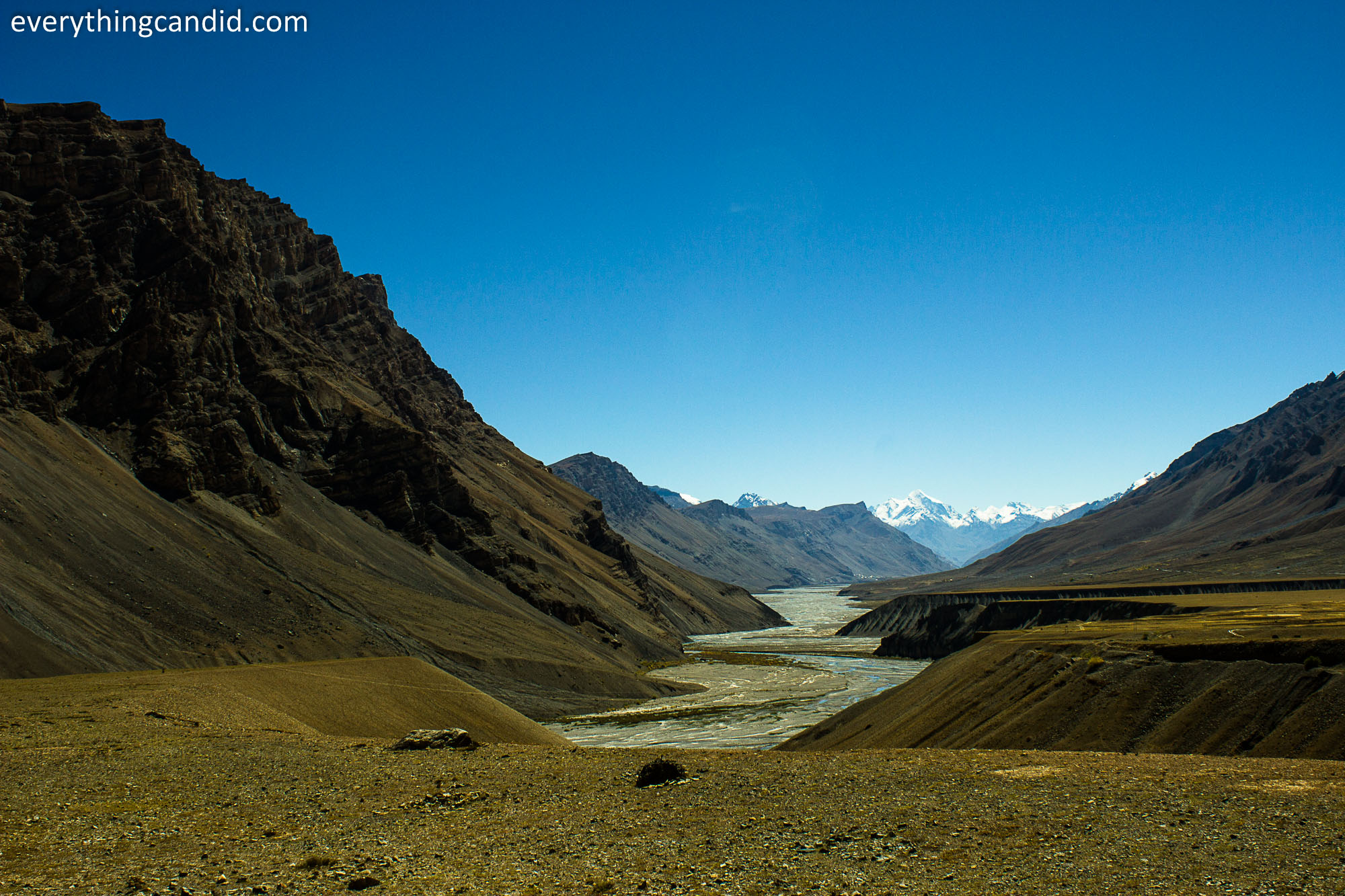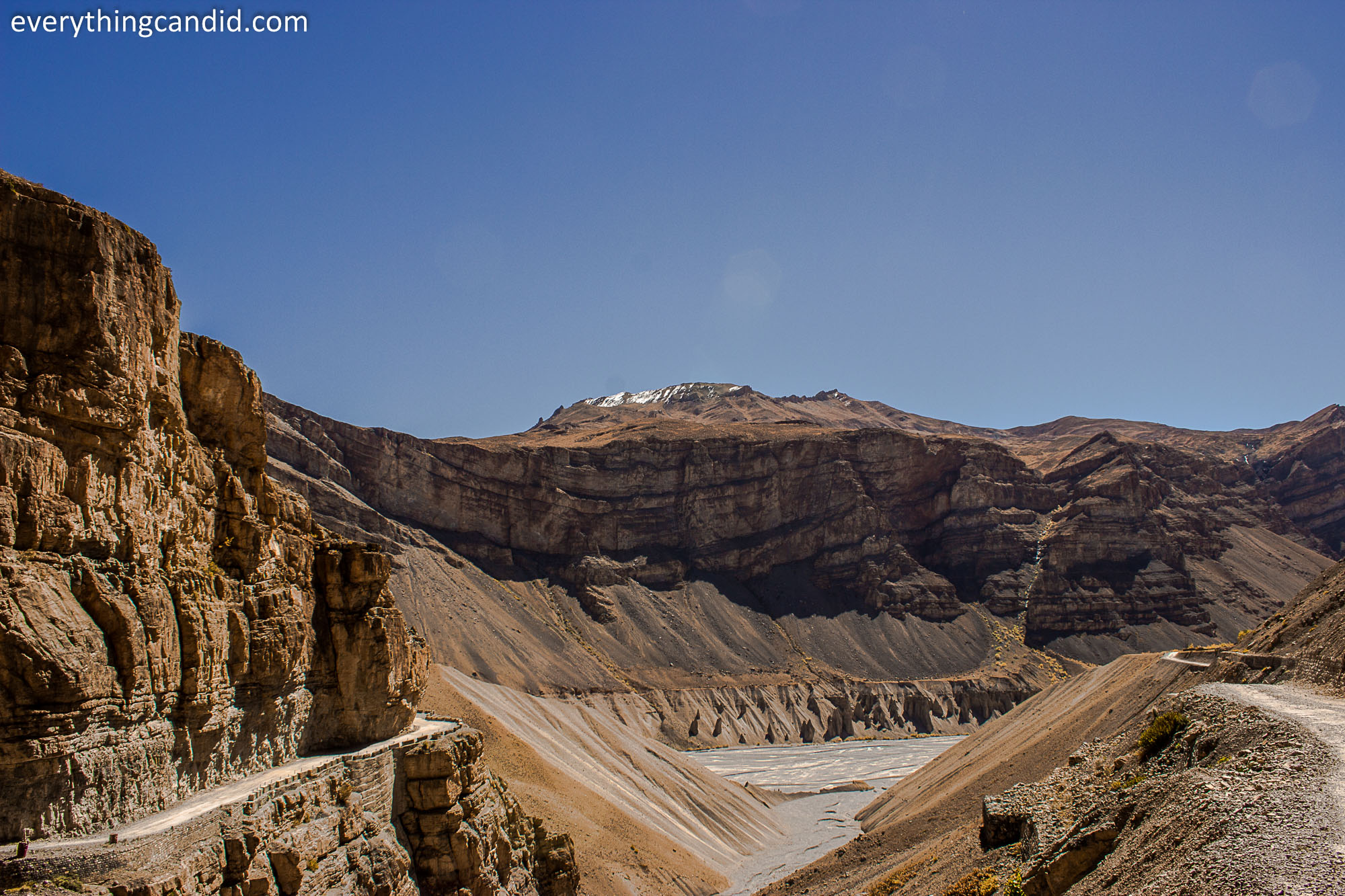 To witness the might and the beauty of Kunzum Range we started our road trip from Kaza side and it was a 70 KM journey along River Spiti – a last leg of extreme adventure high adrenaline filled with all adjectives one can think of for a road trip..It was offbeat, off-track, adventurous, Self-elevating, risky, scary, heavenly etc etc. Each turn of the road from Kaza to Kunzum brings another breathtaking awe and thus we stopped every mile to capture the expanse of visual scenery spread in all directions.